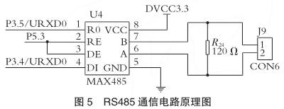 RS485接口組成半雙工網絡,選擇兩線制與上位機電腦相連,采用屏蔽雙絞線傳輸。通信系統整體為總線式結構,這樣1臺上位機*多可以和現場32臺智能儀表相連。采用MAX485芯片完成電壓轉換,圖5為RS485通信電路原理圖。